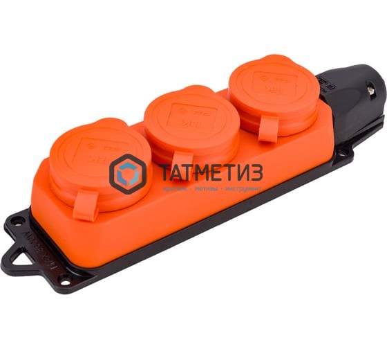 Розетка (колодка) 3-м Омега РБ33-1-0м, ОРАНЖЕВАЯ, IP44 каучук ИЭК
