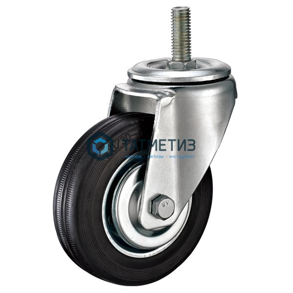 Промышленные колеса с болтом. Поворотные, черная резина, роликоподшипник.
